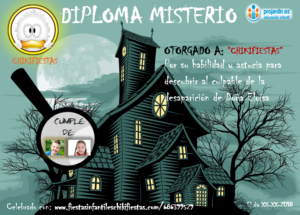 Al final de la fiesta les daremos a los participantes un diploma personalizado con el nombre de los invitados y la foto del organizador de la fiesta al contratar el temático completo